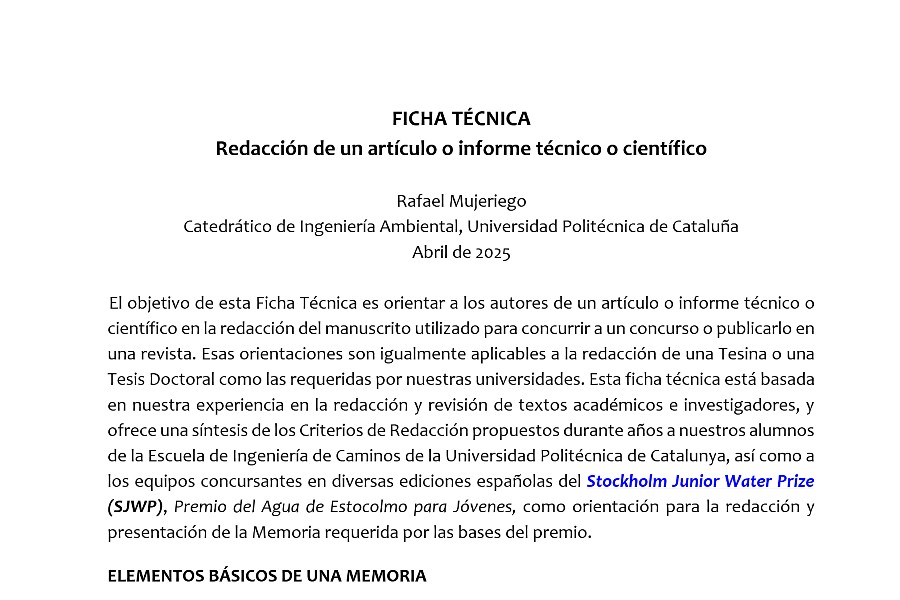 Ficha técnica: Redacción de un artículo o informe técnico o científico