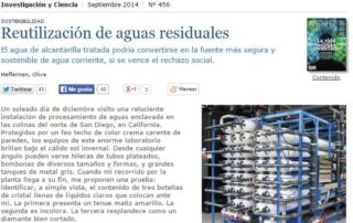 La reutilización del agua está llegando finalmente al gran público, más allá de los lectores de revistas técnicas y científicas nacionales e internacionales