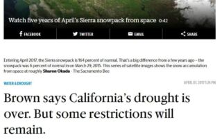 El diario Sacramento Bee publicó el pasado sábado 7 de abril la noticia de que la sequía había terminado oficialmente para la mayor parte del estado, aunque los funcionarios encargados de estos temas siguen insistiendo [...]