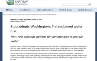Una nota de prensa del Departmento de Ecología del estado de Washington, publicada el pasado 24 de enero, anuncia la adopción de la primera norma sobre la utilización de agua regenerada en el estado, ampliando [...]