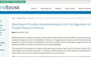 El pasado 7 de febrero, la WateReuse Arizona, la Arizona Water Association y el National Water Research Institute (NWRI) anunciaron la publicación del Guidance Framework for Direct Potable Reuse in Arizona, un documento de 114 [...]