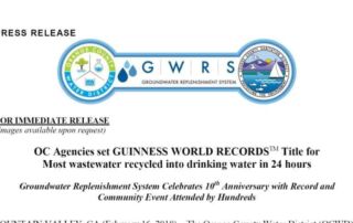 OCWD y OCSD establecen un record Guinness de regeneración de agua