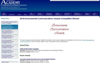 La Academia Americana de Ingenieros y Científicos Ambientales ha concedido el Gran Premio de Comunicación Ambiental a la Campaña de Agua Embotellada llevada a cabo por el Groundwater Replenishment System (GWRS) que gestionan conjuntamente el [...]