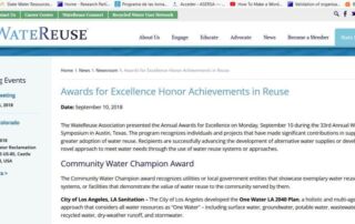 El pasado mes de septiembre, la WaterReuse Association otorgó los premios anuales a la excelencia en reutilización del agua, durante su reciente Simposio anual de reutilización celebrado en Dallas, Texas. El listado de premios muestra [...]