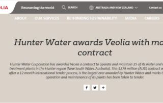 Veolia operará 25 plantas en Hunter, Australia