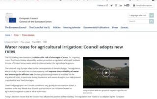 Reutilización de agua para riego agrícola: nueva posición del Consejo de Europa