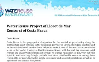 La ficha informativa del proyecto de reutilización de agua en Lloret de Mar, Girona, elaborada con motivo de la 8ª IWA Conferencia Internacional sobre Regeneración y Reutilización de Agua, puede descargarse en versión inglesa [...]