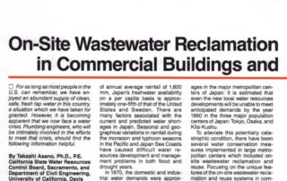 El artículo titulado "On-site Wastewater Reclamation and Reuse Systems in Commercial Buildings and Apartment Complexes", publicado en la revista Plumbing Engineer en septiembre de 1986, puede descargarse aquí.