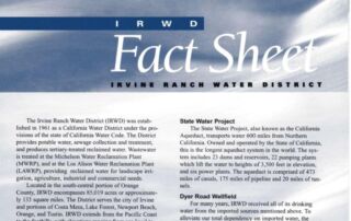 La fact sheet publicada por Irvine Ranch Water District en 2002, describiendo la historia y actividades relativas a la preservacion de la calidad del agua, tal como la venía realizando esta entidad pública loca, [...]