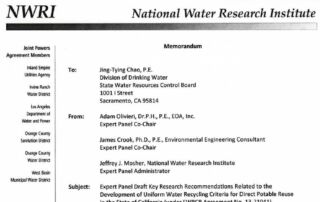 El Memorandum elaborado por el National Water Research Institute (NWRI) sobre las recomendaciones tituladas "Expert Panel Draft Key Research Recomendations Related to the Development of Uniform Water Recycling Criteria for Direct Potable Reuse in [...]