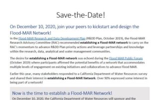 El primer gran paso de la iniciativa de establecer una red de colaboración sobre la Recarga Planificada de Acuíferos con Aguas de Inundaciones (Flood-MAR) en California tendrá lugar el próximo mes de diciembre. El [...]