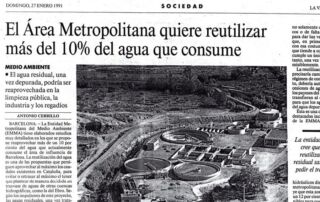 El domingo 27 de enero de 1991, el diario La Vanguardia incluyó en su sección de Sociedad una noticia cuyo titular "El Área Metropolitana quiere reutilizar más del 10 % del agua que consume" [...]
