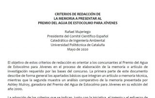Los "Criterios de Redacción de la Memoria para el Stockholm Junior Water Prize", han sido elaborados por el Prof. Rafael Mujeriego, presidente del Jurado español durante numerosos años, como forma de orientar a los [...]