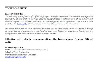 En mayo de 2015, el Boletín de Noticias del IWA Specialist Group on Water Reuse publicó un artículo titulado "Effective and reliable communication: the International System (IS) of units" destinado a promover el debate [...]
