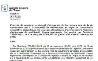 Propuesta de Resolución de la Agencia Catalana del Agua: proyectos de reutilización