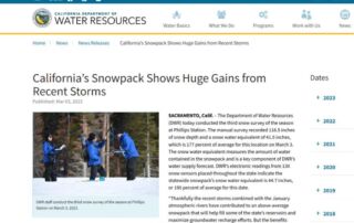 El pasado 3 de marzo, el portal del Departamento de Recursos Hídricos de California publicó los resultados del tercer muestreo de espesor de nieve de la estación húmeda, en el punto geográfico denominado Phillips [...]