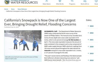 El portal del Departamento de Recursos Hídricos de California publicó el pasado 3 de abril la noticia titulada “California's Snowpack is Now One of the Largest Ever, Bringing Drought Relief, Flooding Concerns” en la [...]