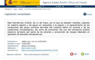 El Boletín Oficial del Estado (BOE) núm. 113, de 12 de mayo de 2023, publicó el Real Decreto-ley 4/2023, de 11 de mayo, por el que se adoptan medidas urgentes en materia agraria y [...]