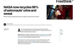 El portal FreeThink, en su edición del 2 de julio, publicó un interesante reportaje de Kristin Houser titulado “La NASA consigue reciclar un 98% de la orina y el sudor de los astronautas”. Esta [...]