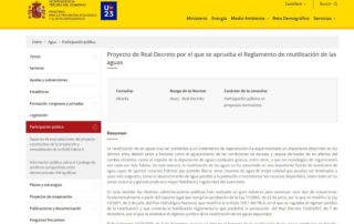 Proyecto de Real Decreto: Reglamento de reutilización de las aguas