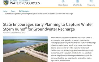 El pasado 12 de diciembre, el Departamento de Recursos Hídricos (DWR) de California publicó una noticia en la que “Animaba a realizar una planificación anticipada para la captación de aguas de escorrentía invernales y [...]