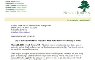 El 21 de marzo, la ciudad de South Jordan, en Utah, publicó una nota de prensa en la que anunciaba la apertura al público de una instalación pionera de purificación del agua. A continuación [...]