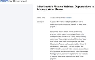 El Boletín WateReuse Review del pasado 10 de junio anunciaba la iniciativa de la Agencia de Protección Medioambiental de los EEUU (USEPA) de organizar un webinario sobre las oportunidades de financiación para proyectos de [...]