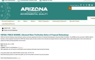 El Departamento de Calidad Ambiental de Arizona (ADEQ) ha publicado una propuesta de normas para la purificación avanzada de agua, que incluye la celebración de una reunión informativa virtual al final del periodo de [...]