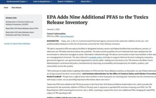 Nueve PFAS adicionales en el inventario de tóxicos de la USEPA