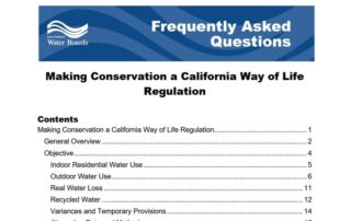 El Consejo Regulador de los Recursos Hídricos de California ha publicado un listado de preguntas frecuentes (FAQ) relativas al texto legislativo “Haciendo del ahorro una forma de vida en California”. El listado de FAQ [...]