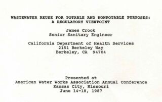 En 1987, el Dr. James Crook, Senior Sanitary Engineer del Departamento de Servicios de Salud de California, presentó en la conferencia anual de la American Water Works Association (AWWA) un trabajo titulado “Wastewater reuse [...]