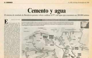 El domingo 16 de agosto de 1998, el diario El País publicó la noticia titulada “Cemento y Agua” en la presentaba “el sistema de reciclado de agua en Benidorm que permitía volver a utilizar [...]