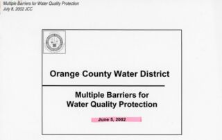 En junio de 2002, el Orange County Water District (OCWD) presentó la “Estrategia de barreras múltiples seguida para asegurar la protección de la calidad del agua”.