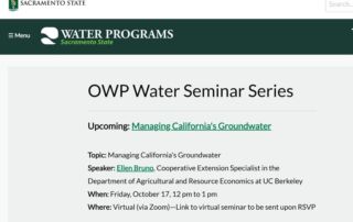 La Oficina de Programas Hídricos de la Sacramento State University organiza un webinario sobre la “Gestión del agua subterránea en California” que será presentado por Ellen Bruno, Especialista de la Extensión Cooperativa, del Departamento [...]