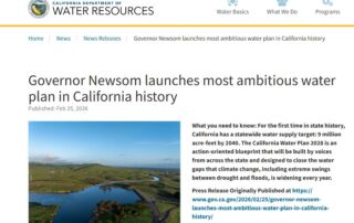 El portal del Departamento de Recursos Hídricos (DWR) de California anunció el pasado 25 de febrero la noticia titulada “El gobernador Newsom lanza el plan hidrológico más ambicioso de la historia de California”, según [...]