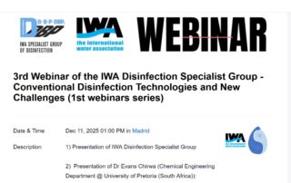 El Grupo Especializado en Desinfección de la Asociación Internacional del Agua (IWA) anuncia la continuación de su serie de webinarios con la celebración del 3.er webinario sobre Tecnologías Convencionales de Desinfección y Nuevos Retos, [...]