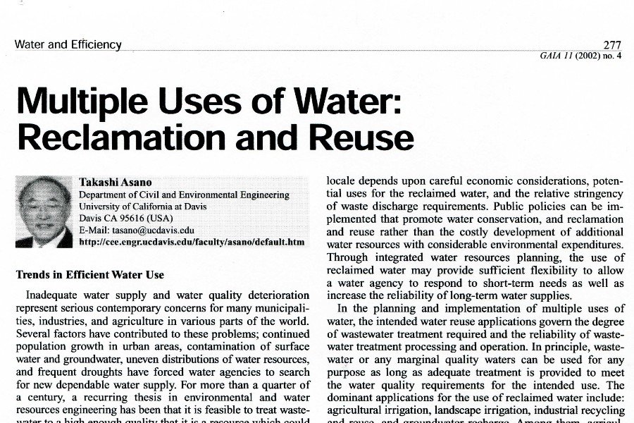 La revista GAIA-Ecological Perspectives for Science and Society, en su Volumen 11, no. 4 de 2002 publicó un artículo del Dr. Takashi Asano titulado “Múltiples usos del agua: regeneración [...]