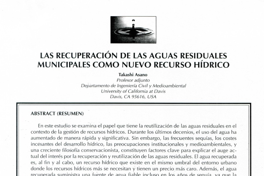 Las Actas de las Jornadas Internacionales: Agua Horizonte 2005 incluyeron una ponencia del Prof. Takashi Asano, del Departamento de Ingeniería Civil y Ambiental de la Universidad de California en [...]