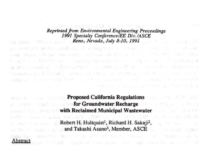 El artículo titulado "Proposed California Regulations for Groundwater Recharge with Reclaimed Municipal Wastewater", publicado en los Environmental Engineering Proceedings de la 1991 Specialty Conference/EE Div./ASCE, puede descargarse aquí. [...]