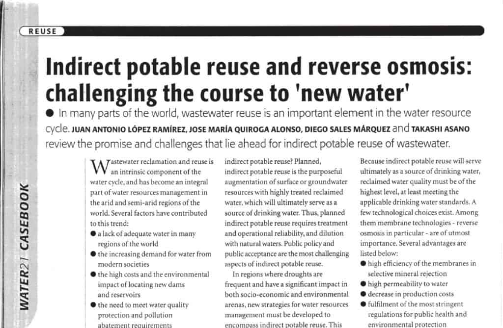 El artículo titulado "Indirect potable reuse and reverse osmosis: challenging the course of "new water", publicado en el Magazine WATER21 en junio de 2002, puede descargarse aquí. [...]