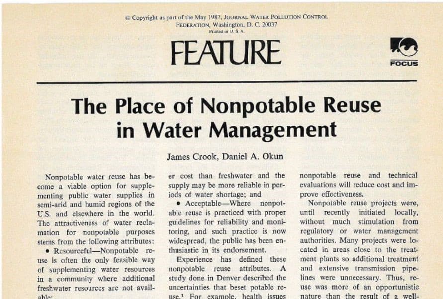 El artículo titulado " The place of nonpotable reuse in water management", publicado por el Journal de la Water Pollution Control Federation, en el Volumen 59, Número 5, del [...]