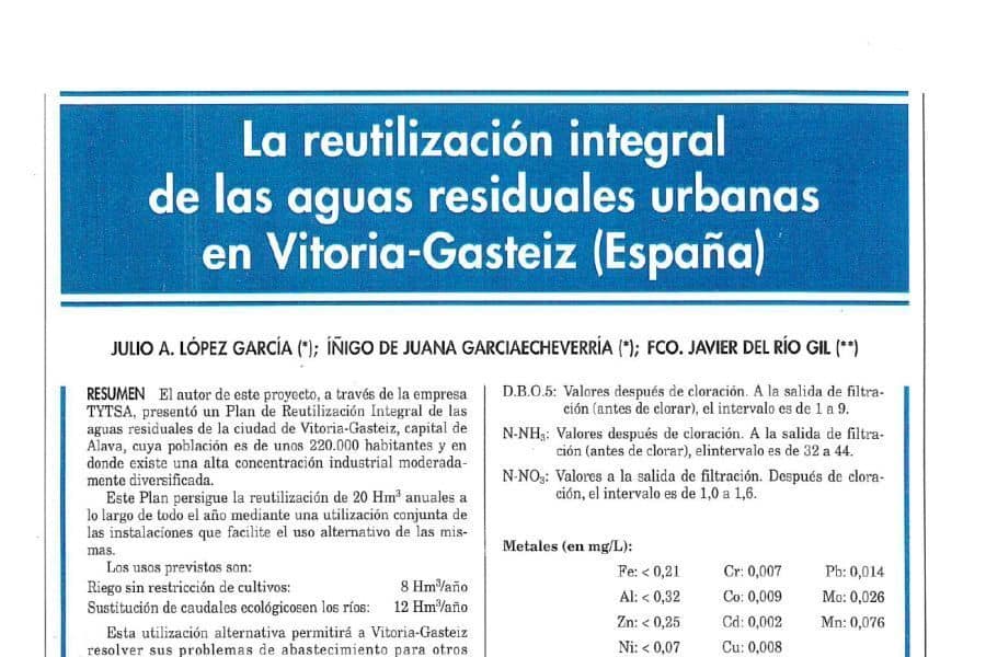 El artículo titulado "La reutilización integral de las aguas residuales urbanas en Vitoria-Gasteiz (España)", presentado en el Congreso Mundial sobre Desalinización y Reutilización organizado por la International Desalination Association [...]