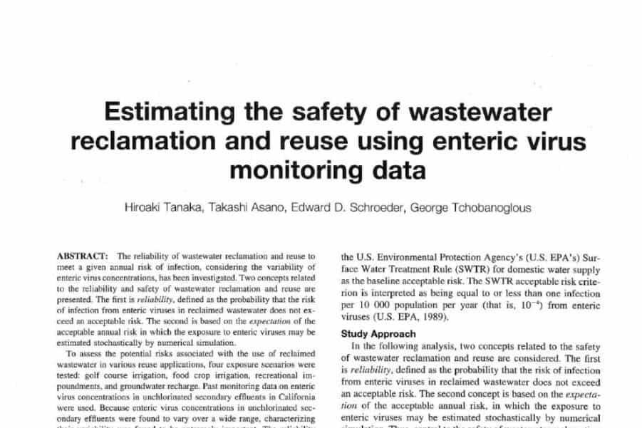 El artículo titulado "Estimating the safety of wastewater reclamation and reuse using enteric virus monitoring data", publicado por el Journal Water Environment Research, Volumen 70, Número 1, de los [...]