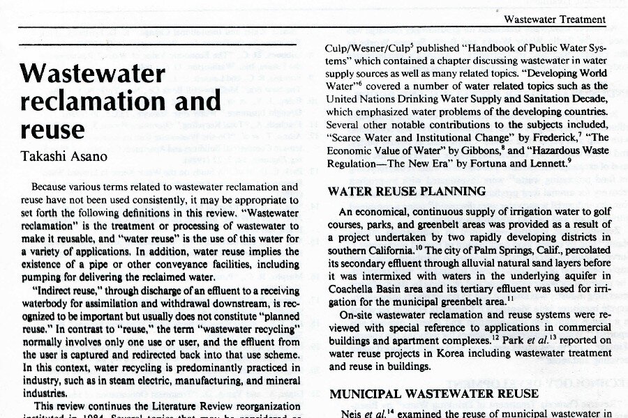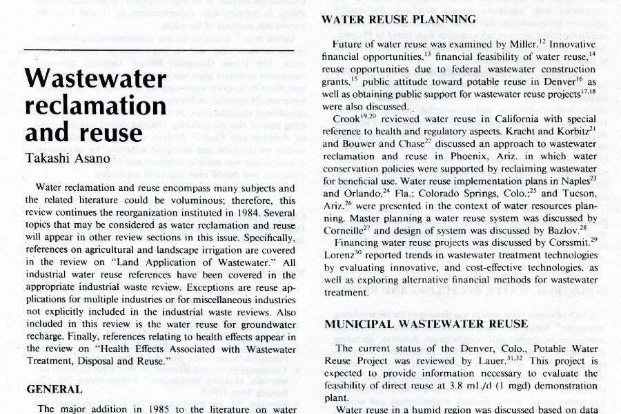 El artículo del Dr. Takashi Asano titulado "Wastewater reclamation and reuse", publicado en el Journal de la WPCG, volumen 59, número 6, de junio de 1987, puede descargarse en [...]