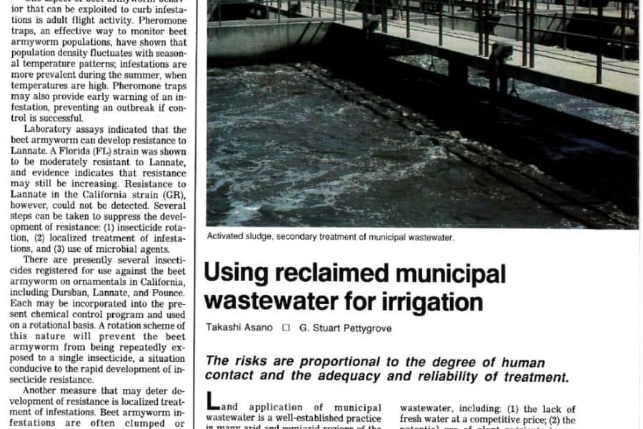 El artículo titulado "Using reclaimed municipal wastewater for irrigation", publicado por el Magazine California Agriculture, en su edición de marzo-abril de 1987, puede descargarse aquí.