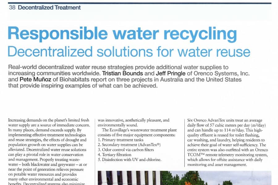 La edición de noviembre/diciembre de 2017 de la revista World Water publicó un artículo titulado “Reutilización responsable del agua: soluciones descentralizadas para la reutilización del agua”. El subtítulo de [...]