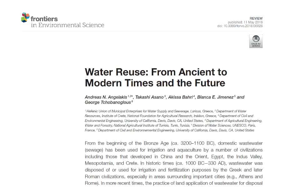 La revista digital Frontiers in Environmental Science, en su edición del 11 de mayo de 2018, publicó un artículo titulado “Reutilización del agua: desde los tiempos antiguos a los [...]