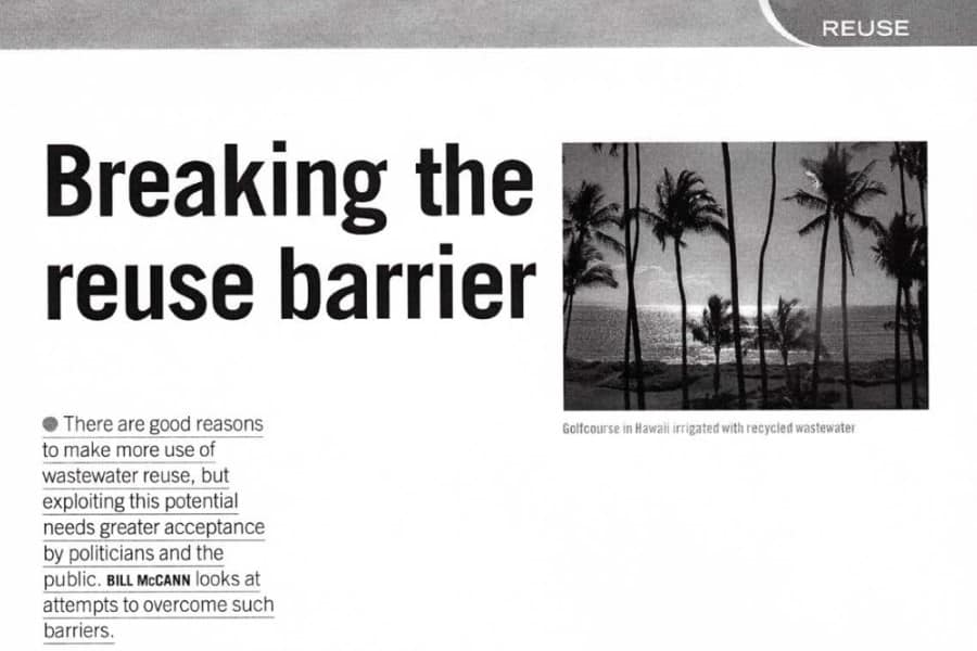 En junio de 2005, la revista WATER21 de la IWA publicó un interesante artículo titulado "Breaking the reuse barrier", en el que Bill McCann presentaba las buenas razones para [...]