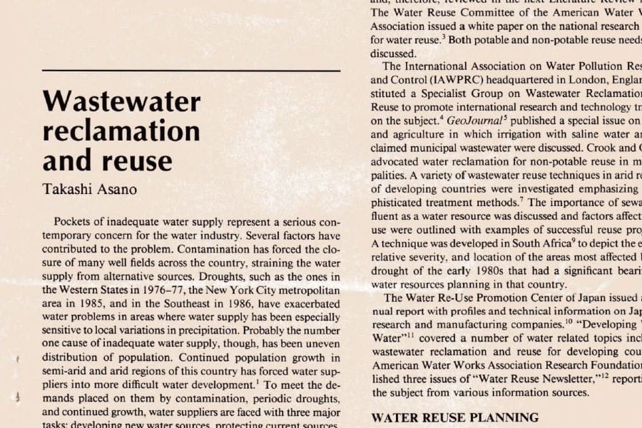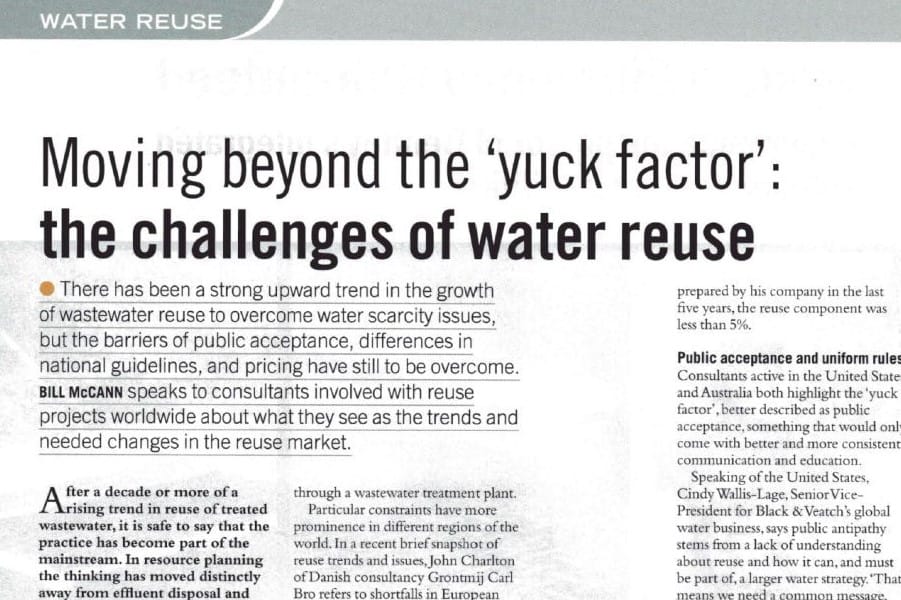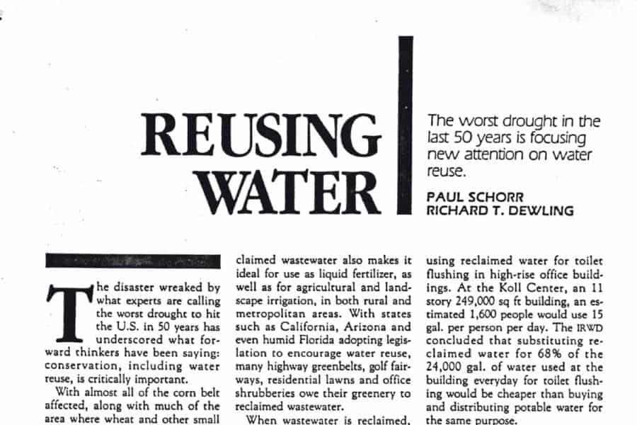 El artículo titulado "Reusing Water", en la revista Civil Engineering en agosto de 1988, puede descargarse aquí.