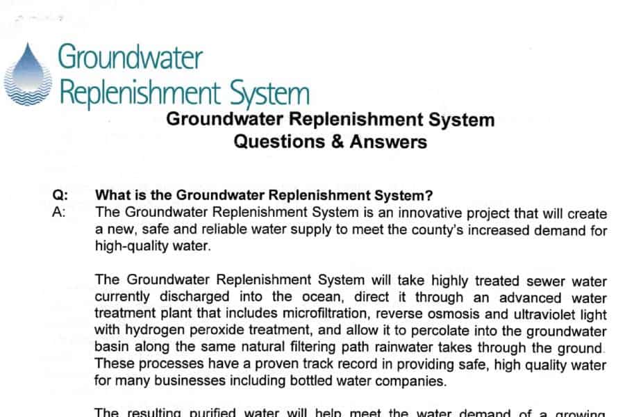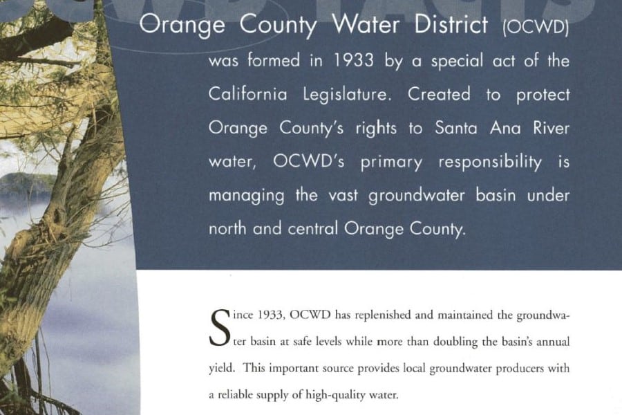 El Orange County Water District (OCWD) publicó un folleto divulgativo titulado "OCWD Facts" en los años anteriores a la entrada en funcionamiento del proyecto Groundwater Replenishment System (GWRS) en [...]